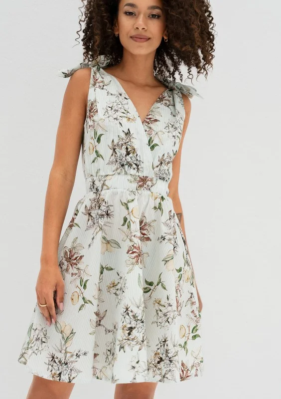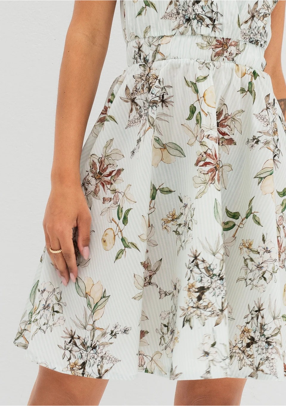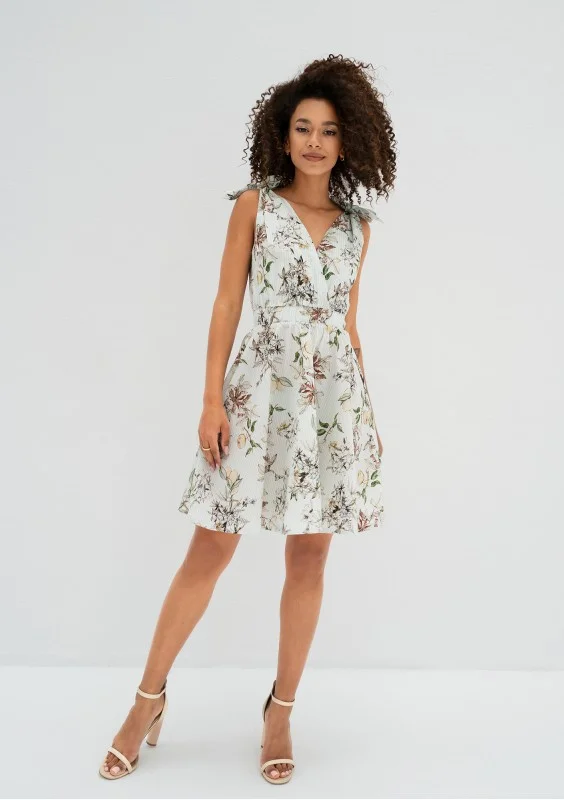 Alexa - Letnia sukienka mini na ramiączkach w kwiatki Ecru