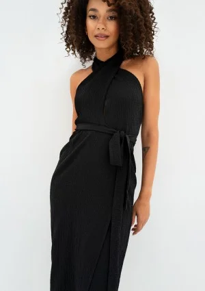 Evita - Kopertowa sukienka z dekoltem typu halter Czarna