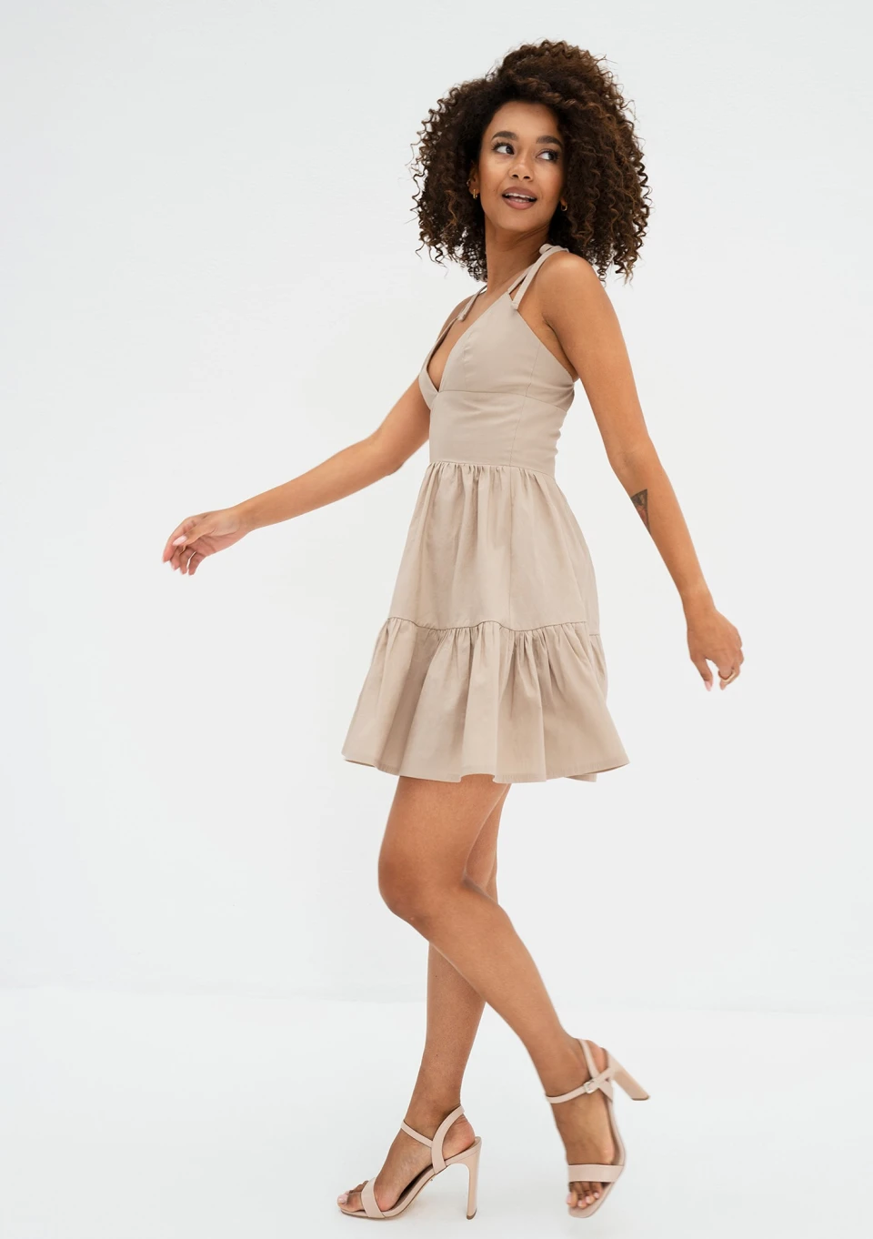 Alexa - Letnia sukienka mini na ramiączkach Beżowa