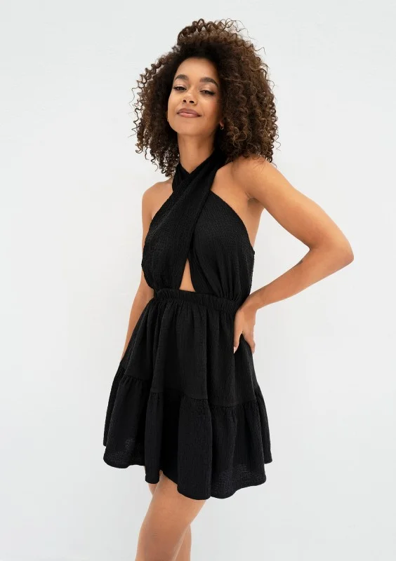 Marita - Kreszowana sukienka mini Czarna
