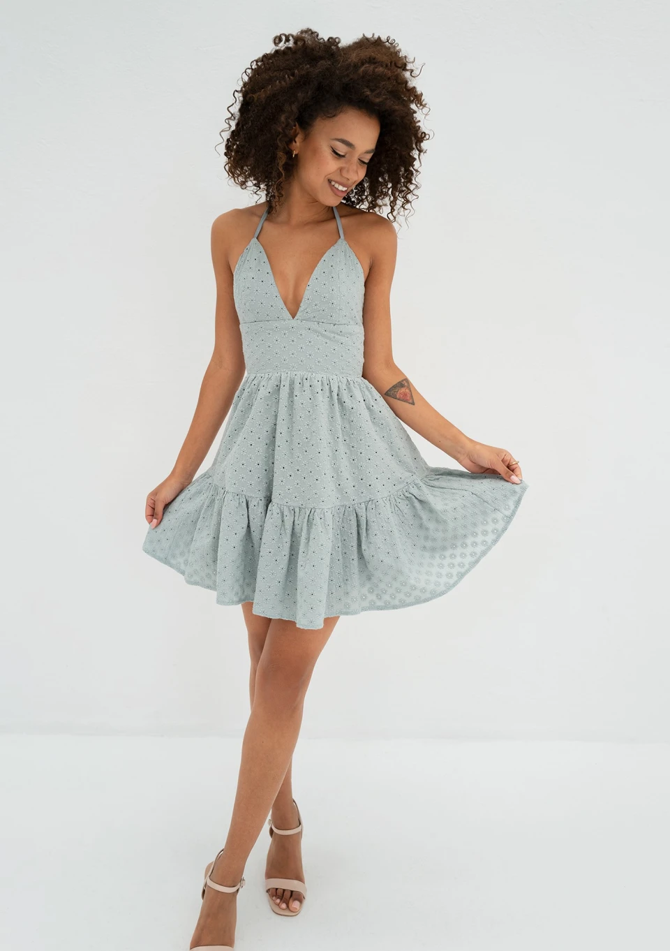 Krissy - Ażurowa sukienka mini na ramiączkach Miętowa