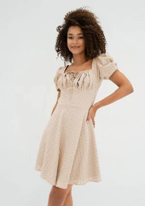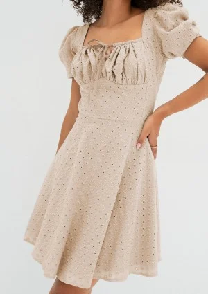 Lucy - Ażurowa sukienka mini boho Beżowa
