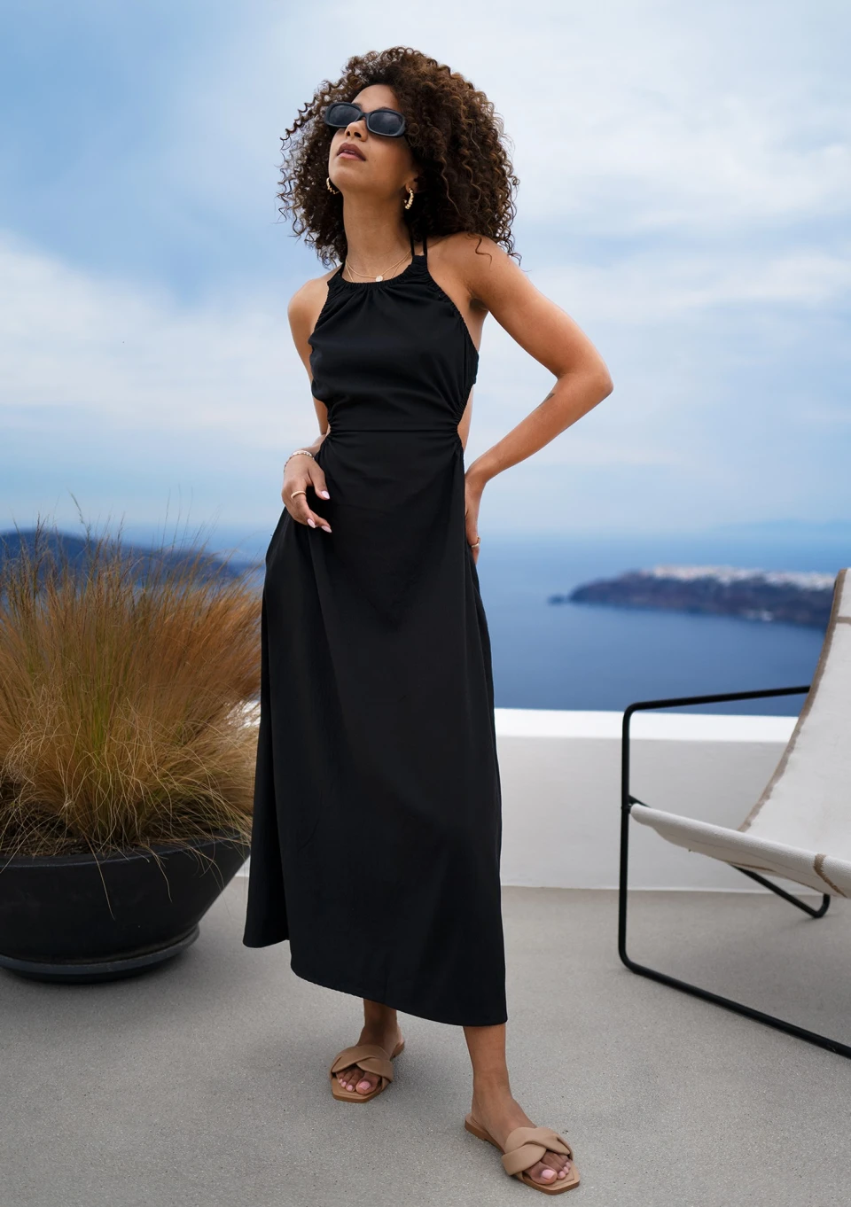 Tina - Letnia sukienka midi z wycięciem Czarna