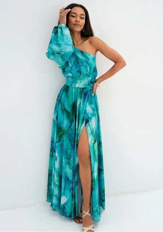 Nyrobi - Sukienka maxi z jednym rękawem Blue Marble