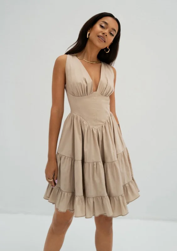 Katie - Sukienka bombka mini Beżowa