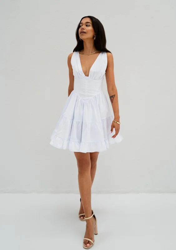 Liya - Sukienka z gorsetową wstawką i przeszyciami Biała