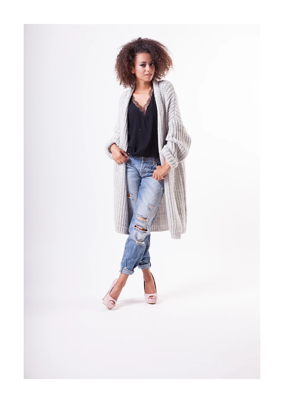 SWETER DŁUGI O GRUBYM SPLOCIE ILM A05
