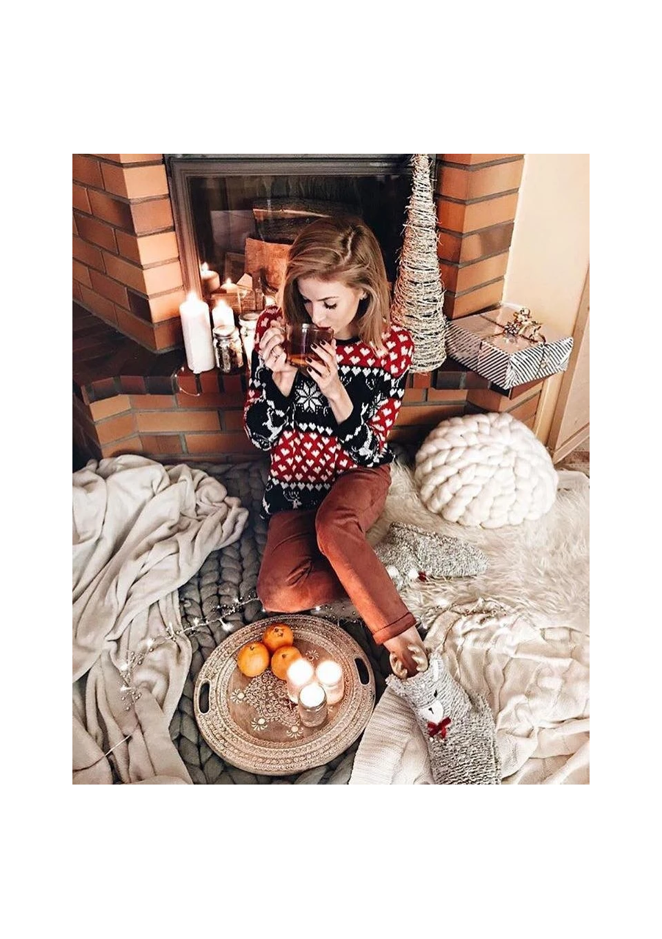 Sweter Winter Hearts to doskonałe połączenie wysokiej jakości wykonania ze świetnym wyglądem. Produkt utrzymano w barwach kojarzących się ze świętami, a zastosowane motywy przywodzą na myśl chłodne zimowe miesiące. Swetry damskie dostępne w naszym sklepie internetowym skutecznie chronią przed zimnem, dlatego są doskonałym wyborem na mroźne dni. Model z serii Winter Hearts może być stosowany zarówno na co dzień, jak i podczas takich okazji, jak na przykład kolacja wigilijna. Został on bowiem wykonany z dbałością o najmniejsze detale, co pozwoliło na uzyskanie wyjątkowego produktu nieposiadającego jakichkolwiek niedociągnięć mogących wpływać na jego wygląd i funkcjonalność. Do stworzenia swetra wykorzystano akryl odporny na pranie w wysokich temperaturach. Dzięki temu możesz intensywnie użytkować zakupiony egzemplarz przez naprawdę długi czas. Swetry damskie dostępne w aktualnej ofercie naszego sklepu online zostały wykonane w Polsce i występują w wielu rozmiarach, co pozwala na dopasowanie odpowiedniego wariantu do sylwetki konkretnej osoby w sposób niemal idealny. Poszczególne wersje różnią się od siebie także pod względem długości, która w przypadku rozmiarów XS i S wynosi 52 cm, a L i M – 53 cm.