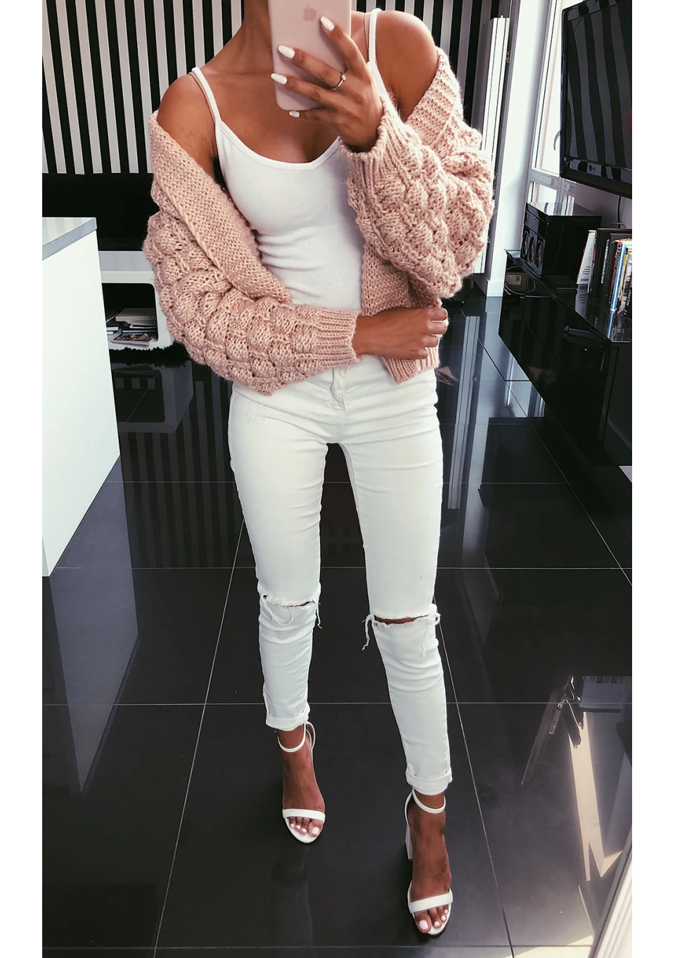 Yuki - Prążkowany sweter z dekoltem V Beżowy