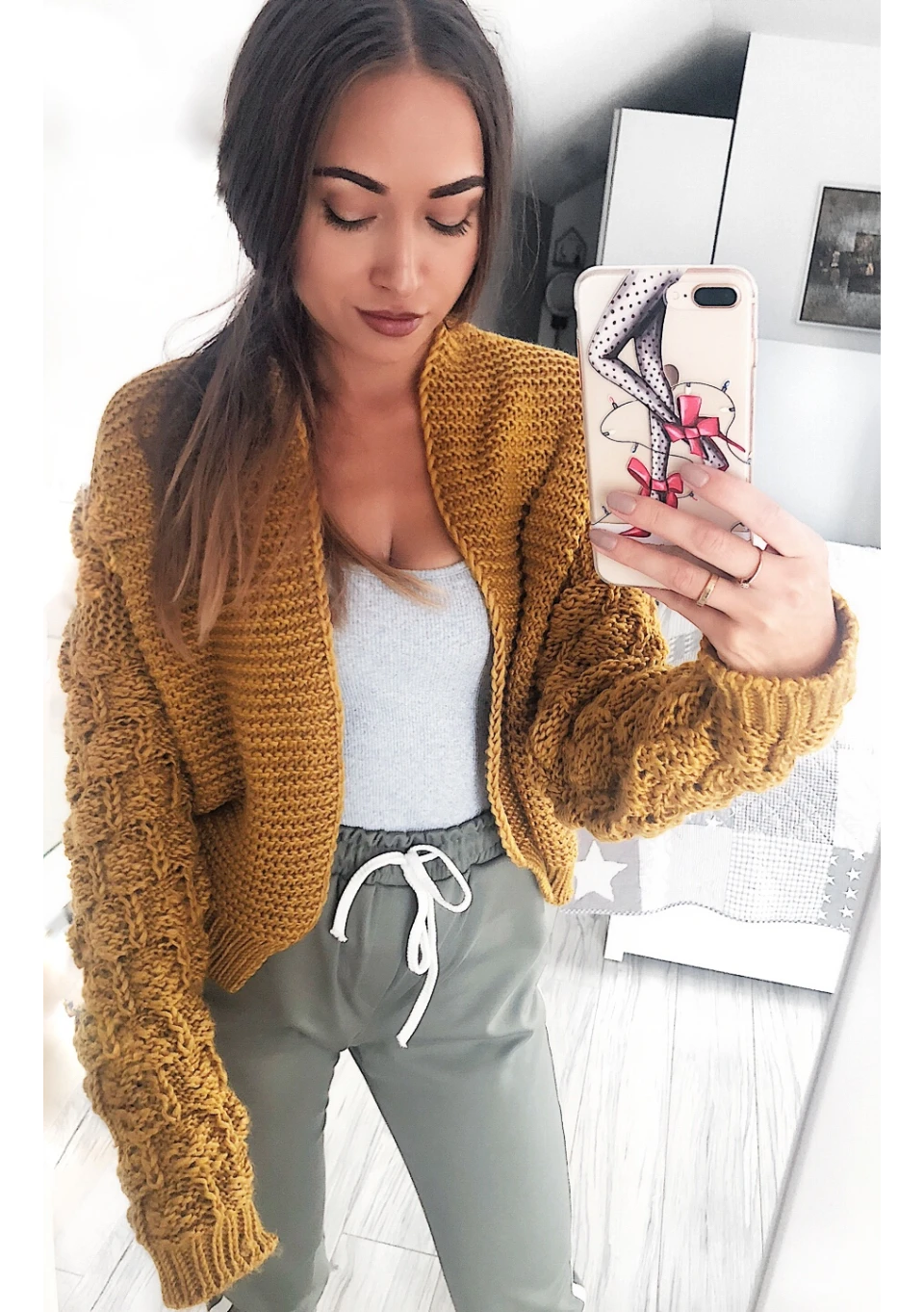 SWETER BOMBER Z OZDOBNYM RĘKAWEM ILM A04