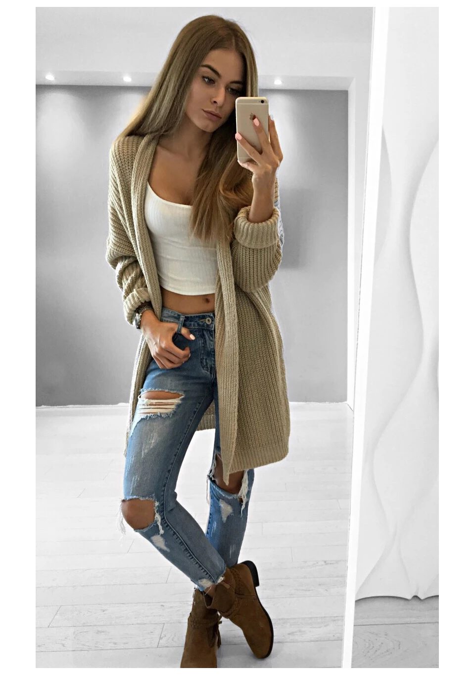 Mebo - Kardigan z dzianiny Camel