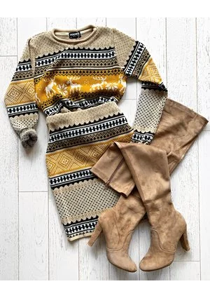 Sweter w norweski wzór w kolorze musztardowym to wyjątkowa propozycja sprawdzająca się świetnie głównie podczas chłodnych miesięcy. Wyjątkowy design produktu ściśle kojarzący się z zimą pasuje do wielu stylizacji, od spódniczki i rajstop połączonych z wysokimi kozakami, aż po zwykłe jeansowe spodnie. Oferowany model został ozdobiony motywami przypominającymi gwiazdki i renifery, co sprawia, że sprawdza się on doskonale zarówno na co dzień, jak i podczas świąt Bożego Narodzenia. Dzięki temu sweter damski w norweski wzór w kolorze musztardowym jest uniwersalny i trafia w gusta wielu osób. Do jego wykonania wykorzystano akryl, co pozwala na bezproblemowe pranie w wysokich temperaturach, a cały proces produkcji miał miejsce w Polsce. Dbałość o detale umożliwiła uzyskanie produktu nieposiadającego nawet najmniejszych niedociągnięć mogących wpływać na jego wygląd i funkcjonalność. Dostępne swetry damskie występują w wielu rozmiarach, dzięki czemu możesz w łatwy sposób dopasować odpowiedni egzemplarz do swojej sylwetki i preferencji. W przypadku rozmiarów S i XS długość produktu wynosi 52 cm, a M i L – 53 cm. Sweter w norweski wzór może być noszony w komplecie ze spódniczką z tej samej serii.