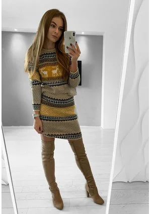 Sweter w norweski wzór Musztardowy ILM A35