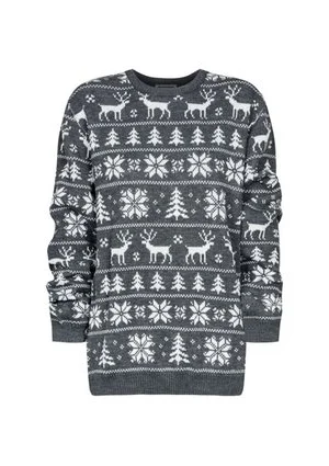 Męski sweter z kolekcji Winter Time w kolorze szarym to wyjątkowe połączenie wysokiej jakości wykonania ze świetnym wyglądem przez długi czas. Produkt został ozdobiony wzorami o białej barwie przypominającymi renifery, gwiazdki i choinki, co ściśle kojarzy się z zimą. Dzięki temu sweter może być wykorzystywany zarówno podczas chłodnych grudniowych dni, jak i w trakcie kolacji wigilijnej. Oferowany model jest bowiem bardzo ciepły i skutecznie chroni nawet przed największymi mrozami. Do jego wykonania wykorzystano akryl, a cały proces produkcji miał miejsce wyłącznie na terenie Polski. Wysoka jakość swetra męskiego z kolekcji Winter Time sprawia, że jest on w stanie służyć Ci prawidłowo przez naprawdę długi czas. Natomiast dbałość o najmniejsze detale sprawiła, że produkt nie ma niedociągnięć mogących wpływać na jego wygląd i funkcjonalność. Dzięki temu nadaje się do prania w wysokich temperaturach i bezproblemowego użytkowania w każdych warunkach. Swetry męskie dostępne w naszym sklepie internetowym występują w wielu rozmiarach pozwalających na idealne dopasowanie do sylwetki konkretnej osoby. Długość produktu w przypadku rozmiaru S wynosi 70 cm, a szerokość – 50 cm.