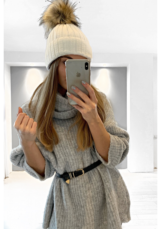Lofty Long – Długi sweter oversize o grubym splocie z warkoczem Ecru
