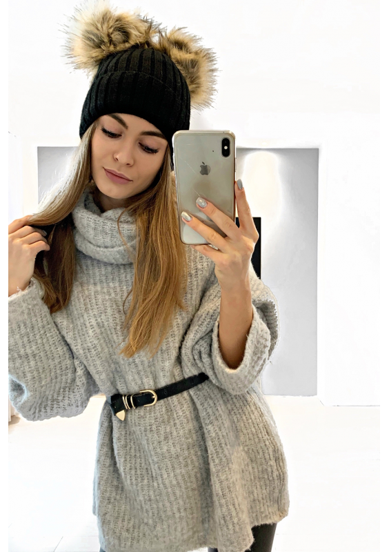 Hood Wrap - Dzianinowy kaptur z otulającym szalem Brązowy