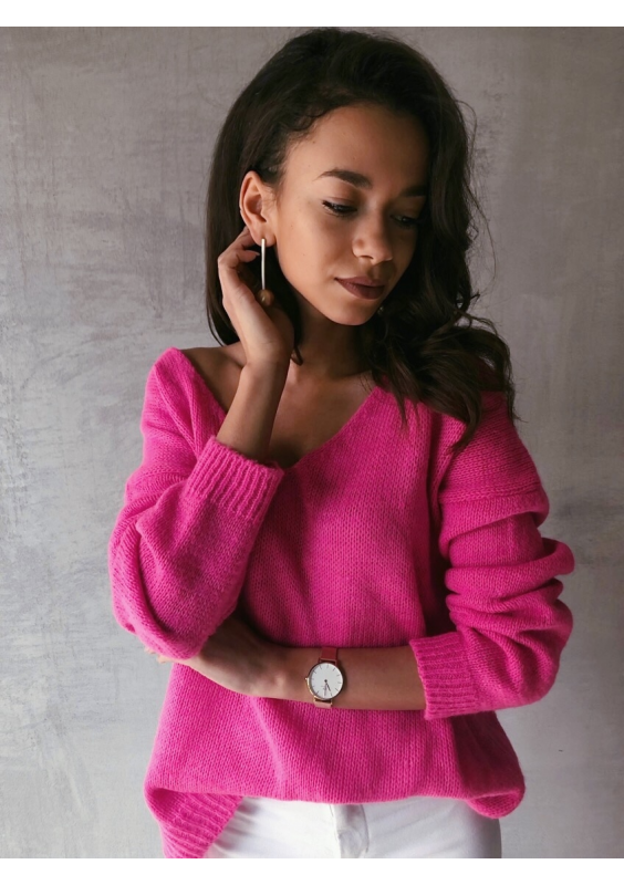 SWETER NEON Z DEKOLTEM W SEREK ILM A002