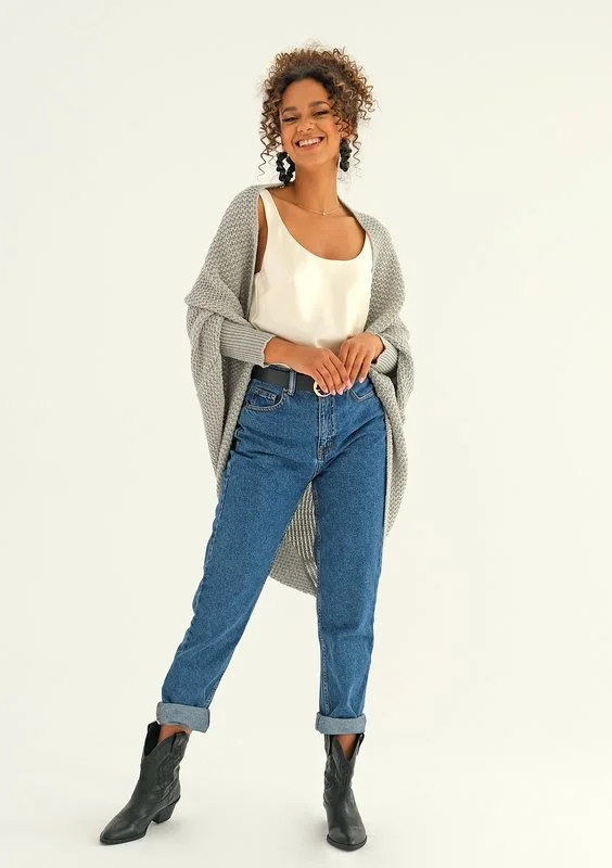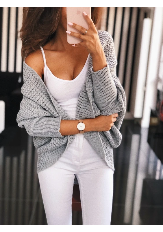 Vila - Sweter narzutka oversize Szary