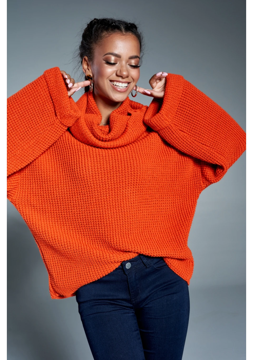 Sweter z golfem A17 Pomarańczowy ILM