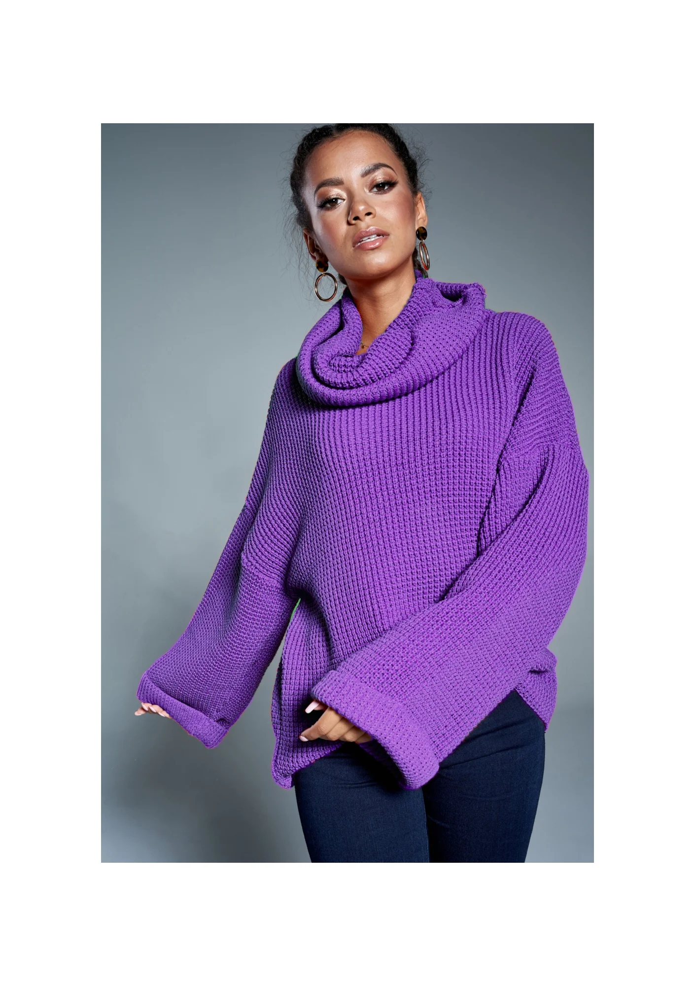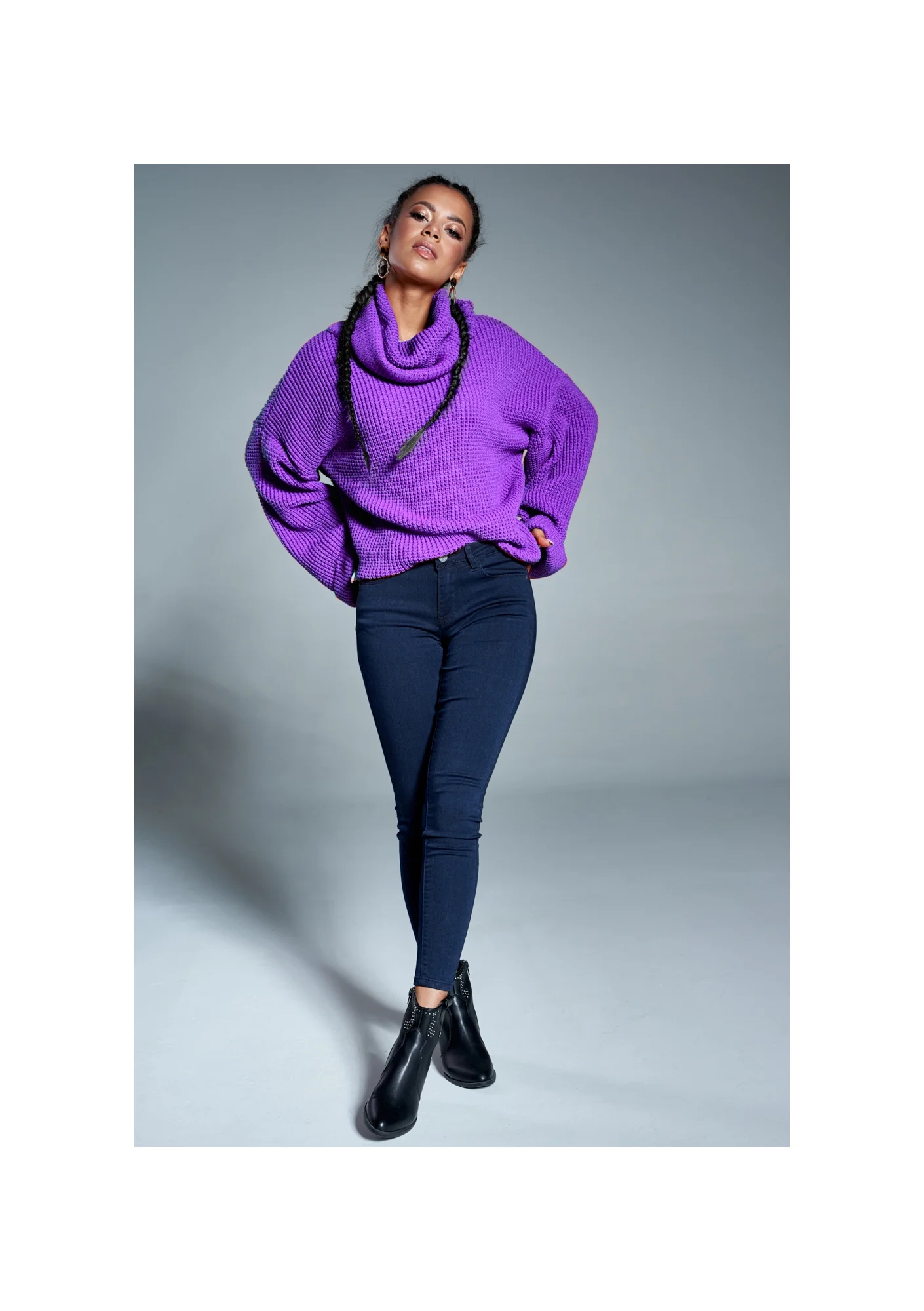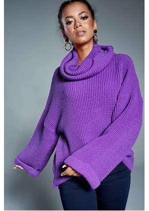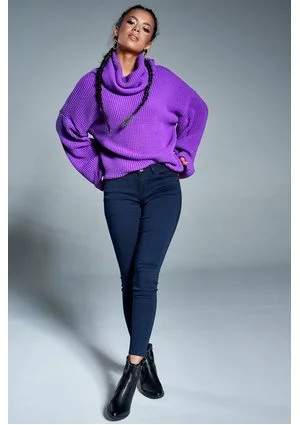 Prezentowany sweter z golfem to propozycja dla kobiet, które uwielbiają tworzyć kolorowe stylizacje. Fioletowy odcień doskonale pasuje do każdego typu urody, dlatego stanowi idealny element damskiej garderoby. Model sprawdzi się zarówno na jesień, jak i na zimę, gdyż ciepły materiał i golf wokół szyi doskonale chronią przed zimnem. Wykorzystana do jego stworzenia dzianina jest niezwykle miła w dotyku, dzięki czemu noszenie swetra na co dzień jest czystą przyjemnością. Jednak nie na tym kończą się jego zalety. Nasze swetry damskie mają oversizowy krój, który jest luźny i zapewnia swobodę ruchów - idealnie sprawdzi się zarówno do pracy, jak i na popołudniowe wyjście na miasto. Warto łączyć go z wąskimi spodniami. Możesz wykorzystać ten sweter na wiele sposobów, w tym również do stylizacji z kurtką lub płaszczem, wystawiając golf na wierzch, co pozwoli stworzyć modny zestaw na każdą okazję.