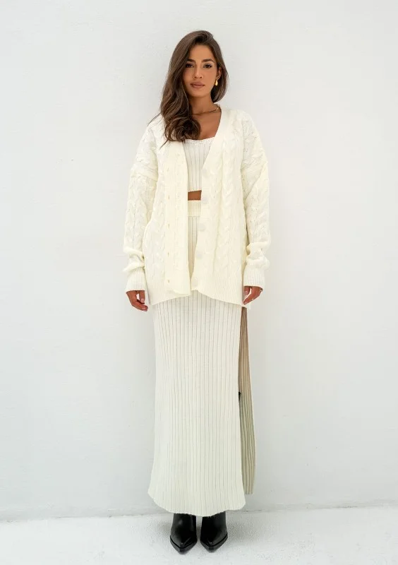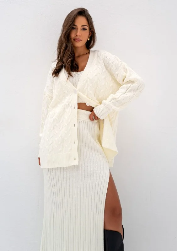 Daven - Kardigan oversize z ozdobnym splotem Ecru