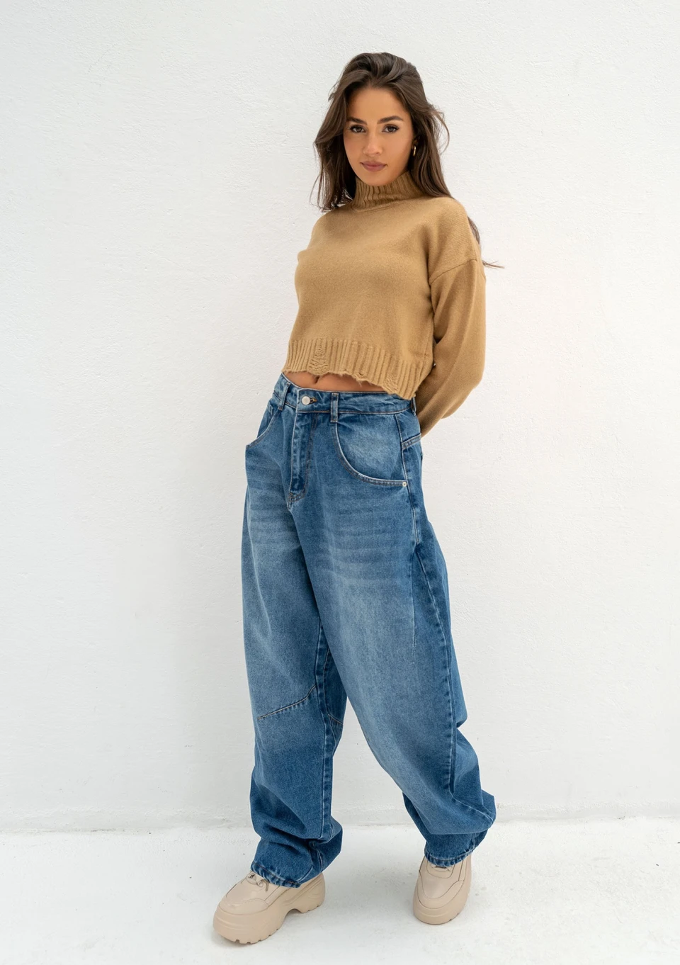 Jesień mieni się mnóstwem ciepłych barw. Nasz kamelowy sweter damski z golfem o krótkim kroju rewelacyjnie wpisuje się w atmosferę sezonu. Jeśli co roku wyczarowujesz klasyczne stylizacje oparte o naturalną paletę brązu i beżu, nasz model Nari będzie bazą do wszechstronnego zastosowania. Miękki, otulający element pozwala na swobodne noszenie z dżinsami, eleganckimi spodniami czy spódnicami.