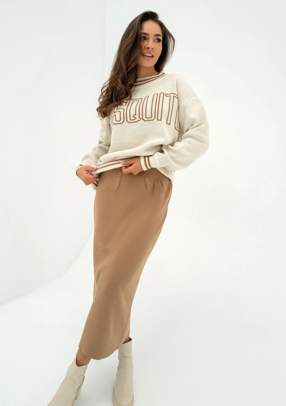 Kirry - Spódnica midi z dzianiny Beige