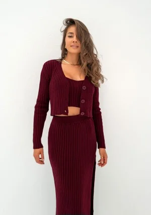 Celine - Krótki kardigan z dzianiny Bordo