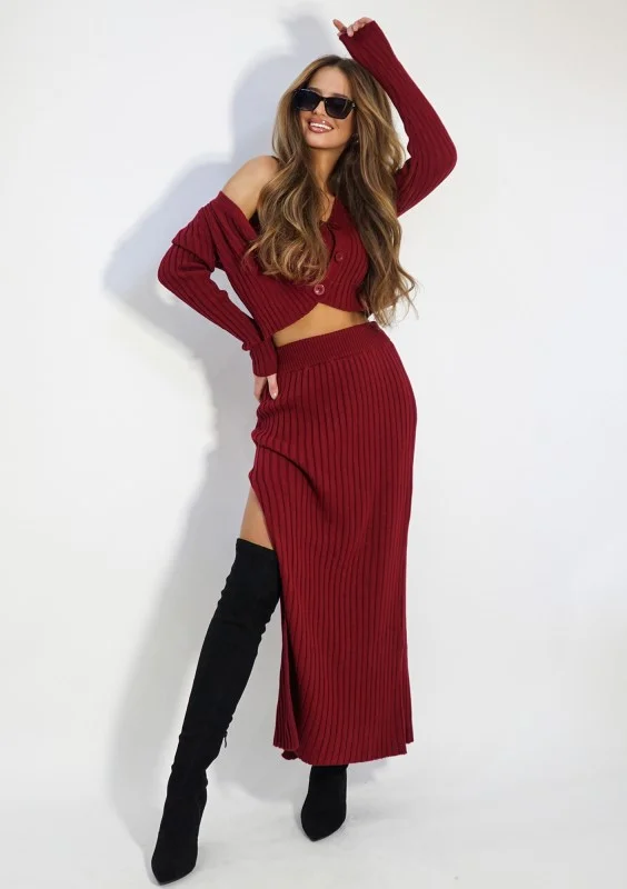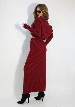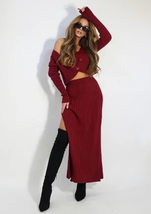Przytulny i pełen subtelności, krótki kardigan z dzianiny w kolorze bordo to must-have na jesień. Jego miękki materiał zapewnia niezwykły komfort, a krój pozwala na swobodę ruchów. Doskonale sprawdzi się zarówno podczas relaksujących chwil z kubkiem gorącej czekolady, jak i podczas jesiennych spacerów. Ten śliczny, zapinany sweter damski o krótkim kroju możesz połączyć w spójny zestaw. Dedykowane elementy stylizacji to krótki top i spódnica maxi o tej samej nazwie Celine.