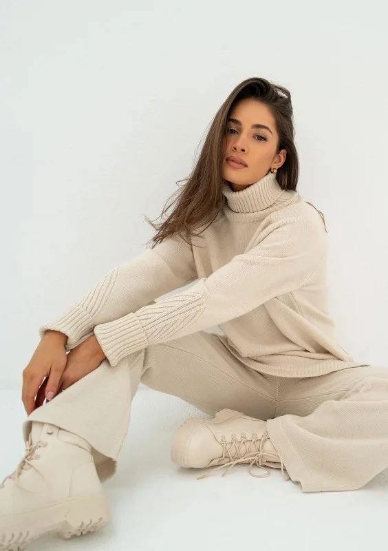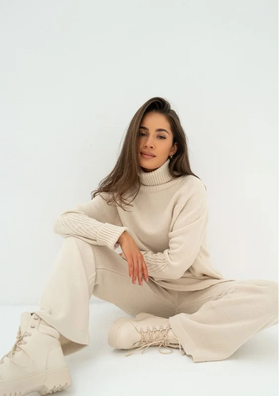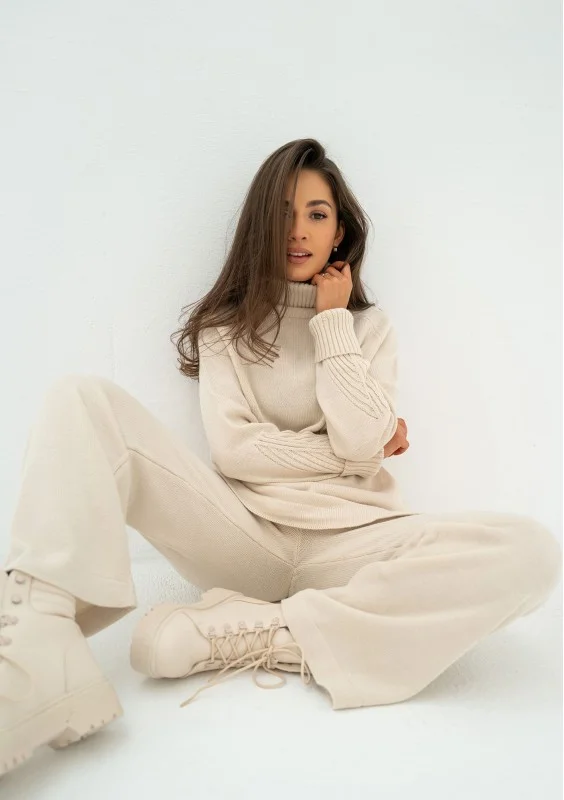Sweter idealny nie istnie... A właśnie, że istnieje i jest dostępny w naszej ofercie! Ten model w kolorze ecru dedykujemy każdej kobiecie, która stawia na klasyczny deisgn i wygodny luz formy. Gwarantuje ciepło, komfortową swobodę. Ma drobne rozcięcia po bokach. Golf nie uwiera szyi, lecz miękko ją otula, a materiał zawierający włókna akrylu nie powoduje swędzenia skóry ani innych podrażnień. Stawiamy na wszechstronne propozycje, które możesz nosić na okrągło, nie martwiąc się o efekt końcowy outfitu. Sweter damski z golfem Oudhy ma urozmaicony design: zwróć uwagę na piękny, odmienny splot dzianiny na rękawach. Idealnie dopełnia styl golfu!