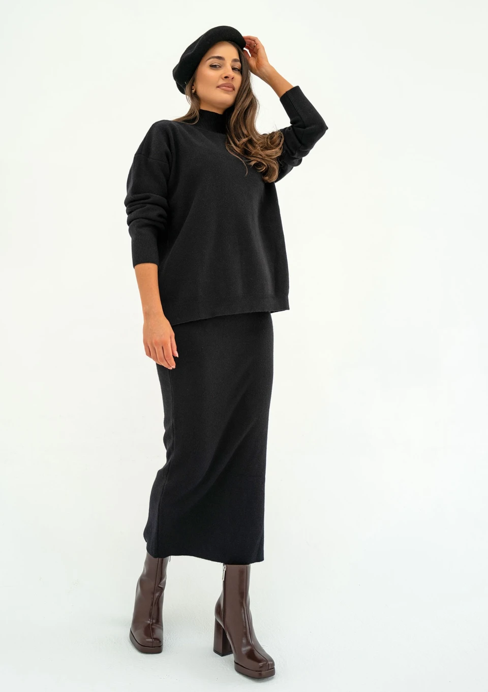 Wyjątkowo miękki i przytulny sweter o gładkiej fakturze, wykonany z dzianiny z wiskozą. Model o luźnym fasonie z drobnym golfem, w czarnym kolorze.