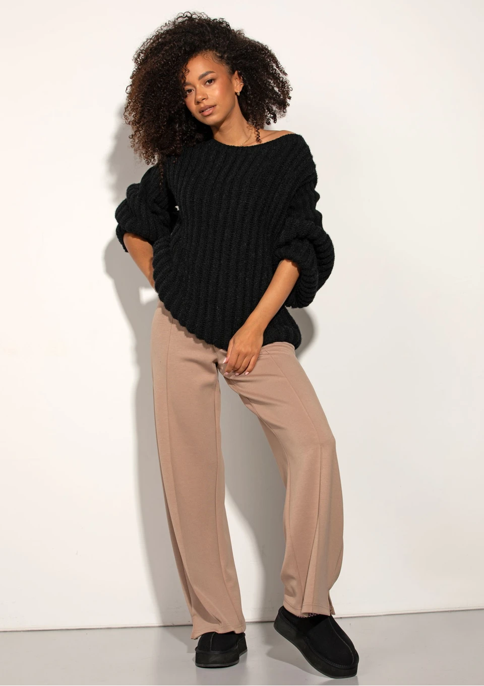 Soft Bare - Miękki sweter o grubym splocie Czarny