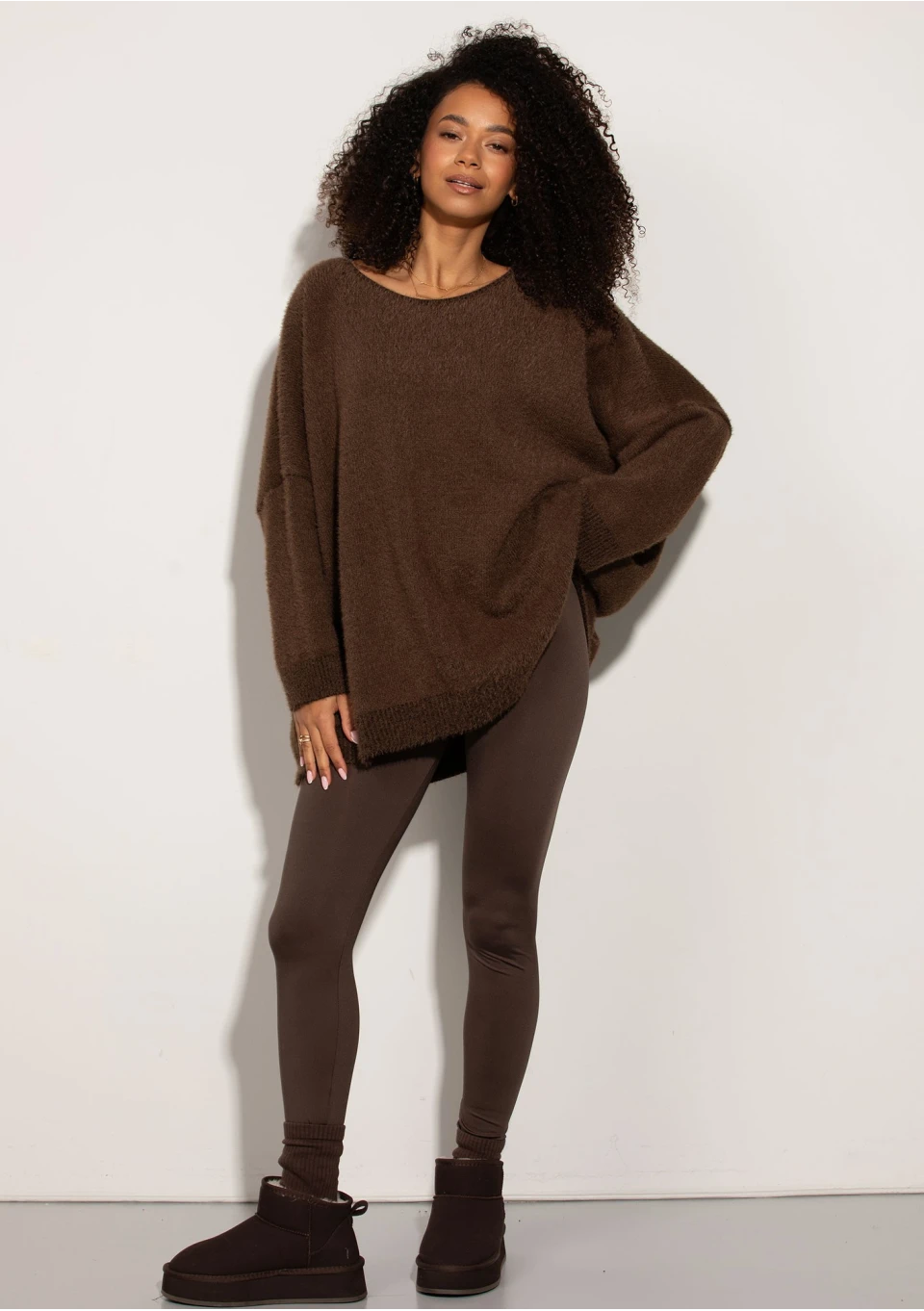 Soft Haze – Miękki sweter oversize z lekkim włosem Brązowy