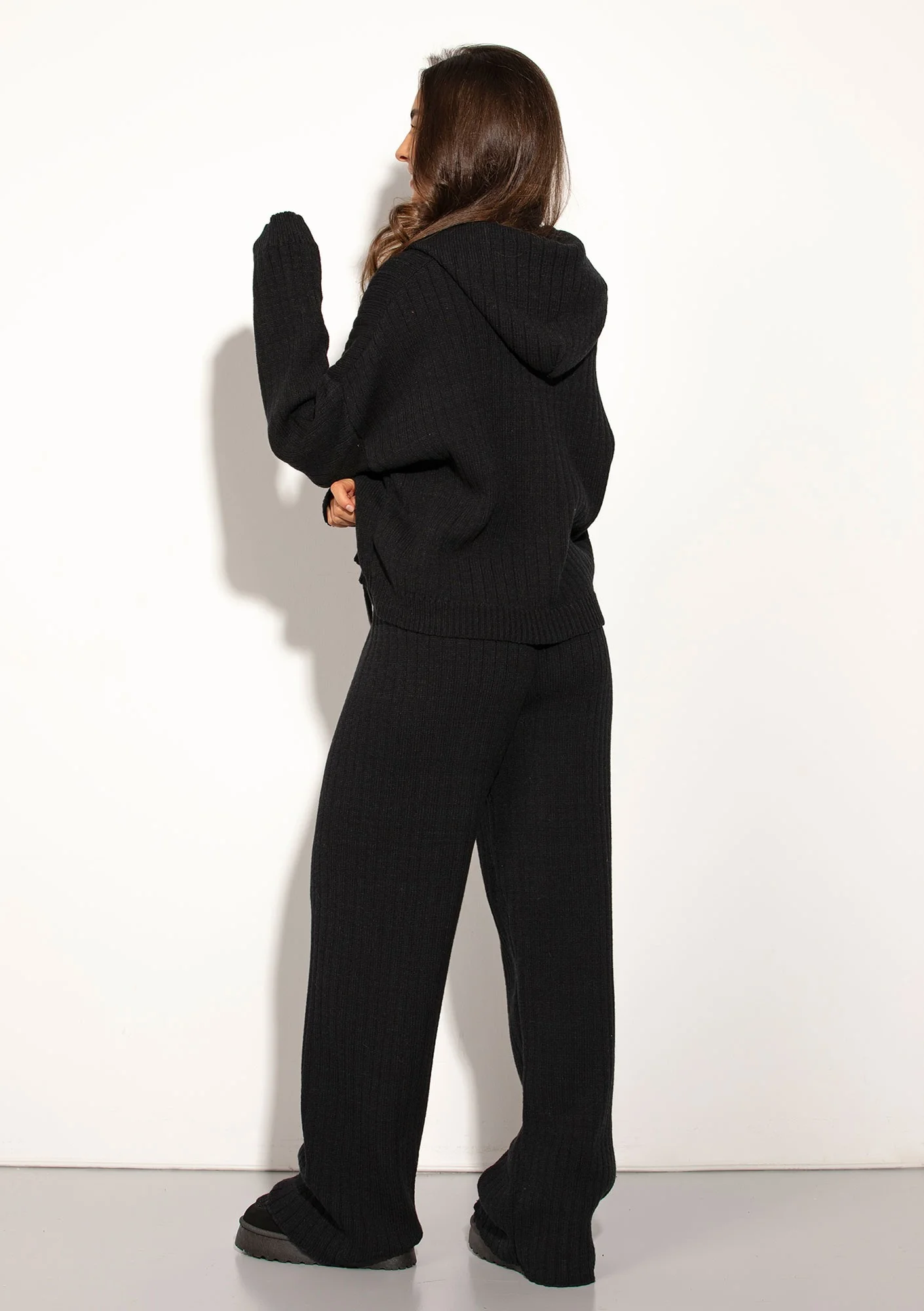Barro - Dzianinowe spodnie o prążkowanym splocie Czarne