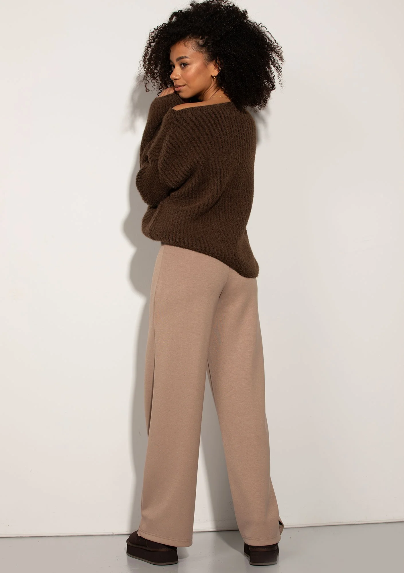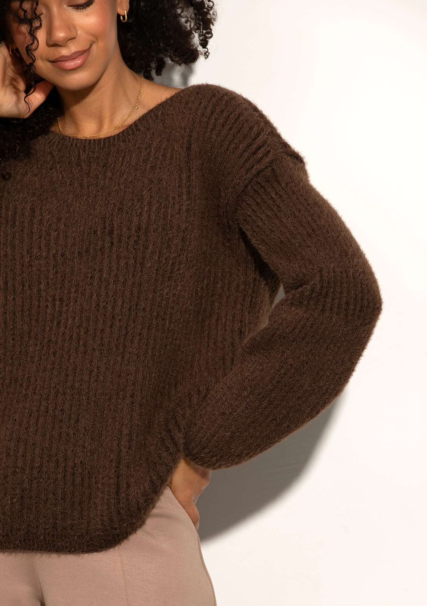 Mousse - Puchaty sweter o miękkiej, prążkowanej strukturze Brązowy