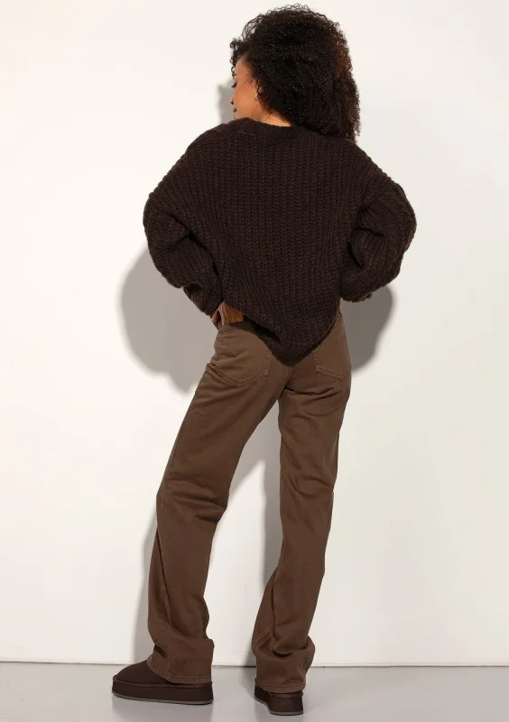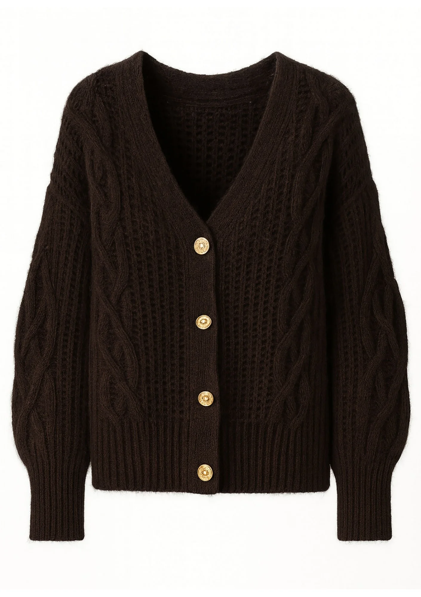 Aran - Puchaty kardigan z klasycznym warkoczowym splotem Brązowy