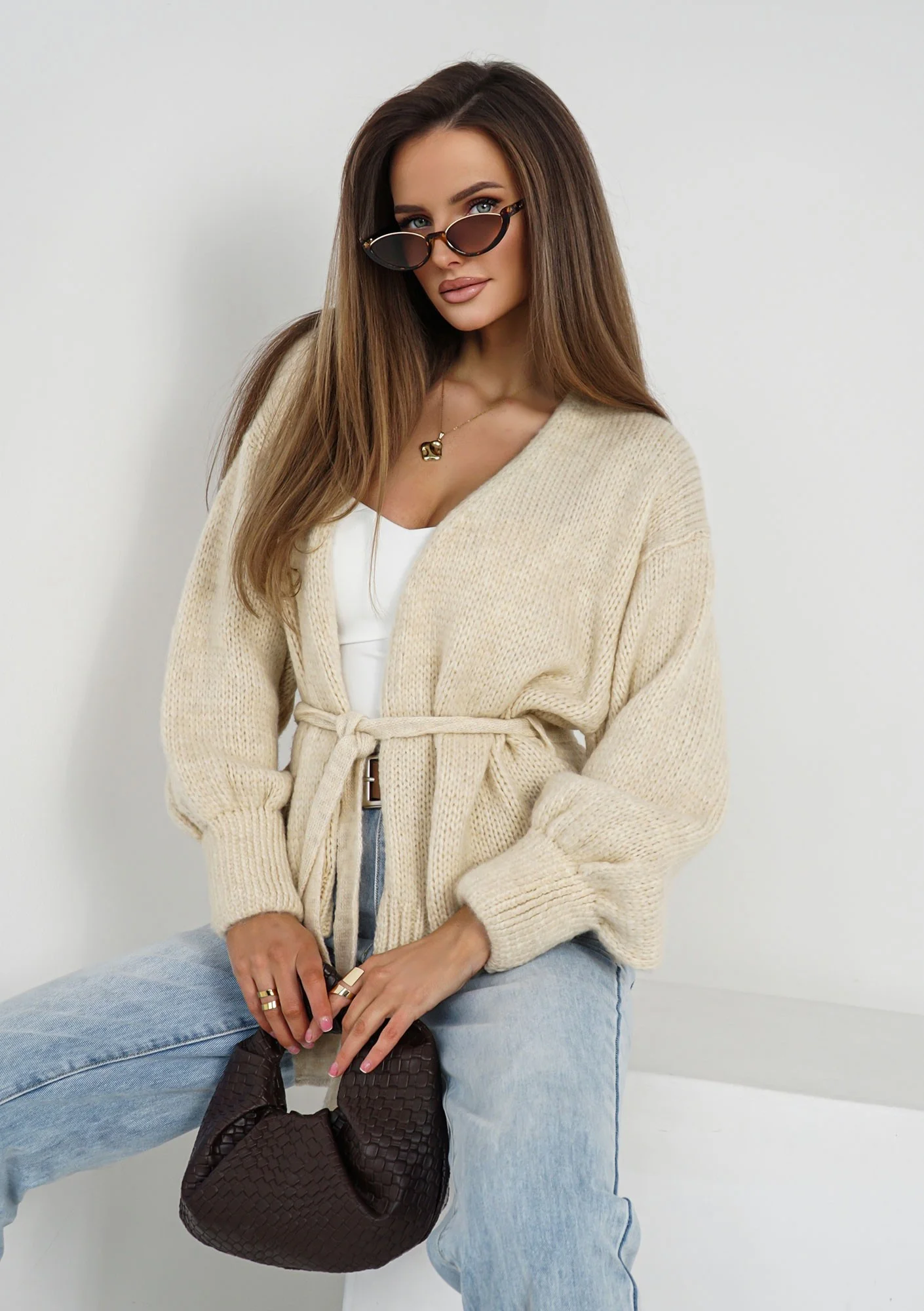 Eve - Miękki kardigan z paskiem Beżowy