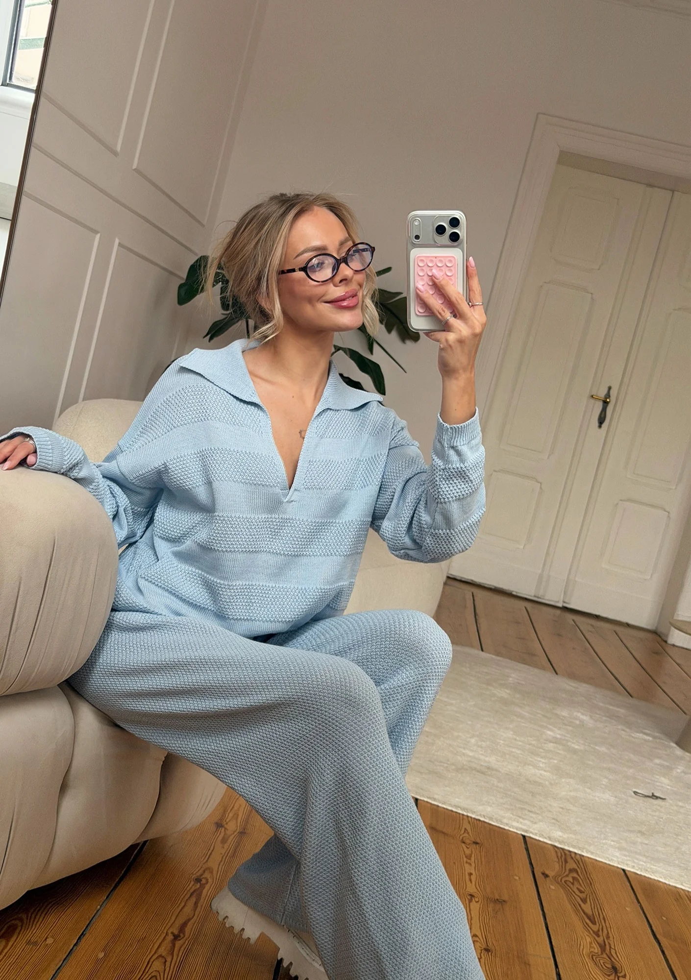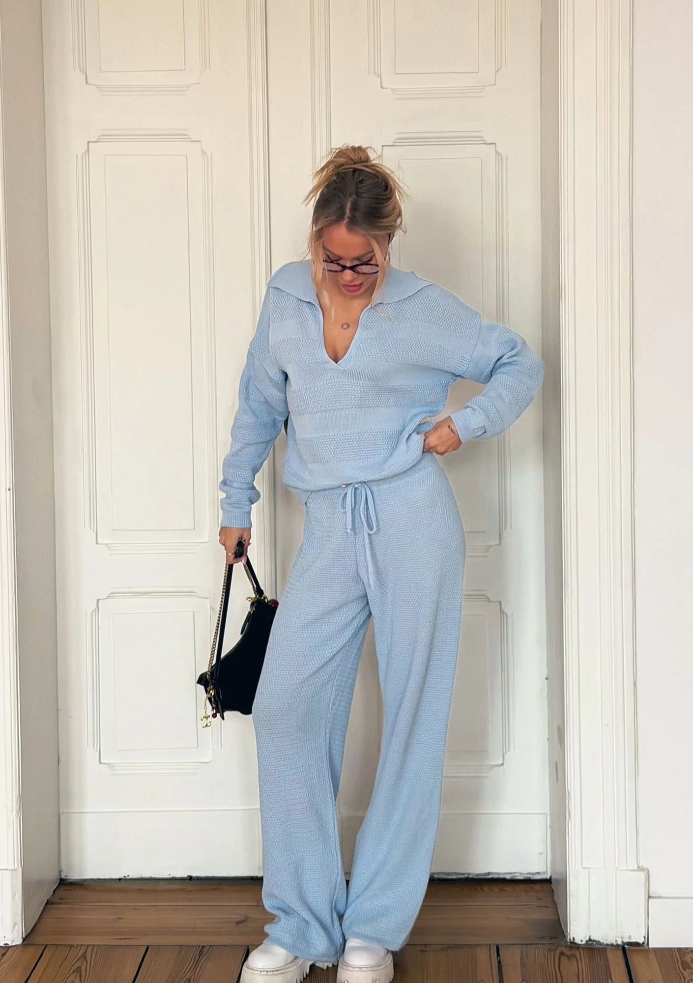 Misti Knit - Lekki sweter dzianinowy z kołnierzykiem Błękitny