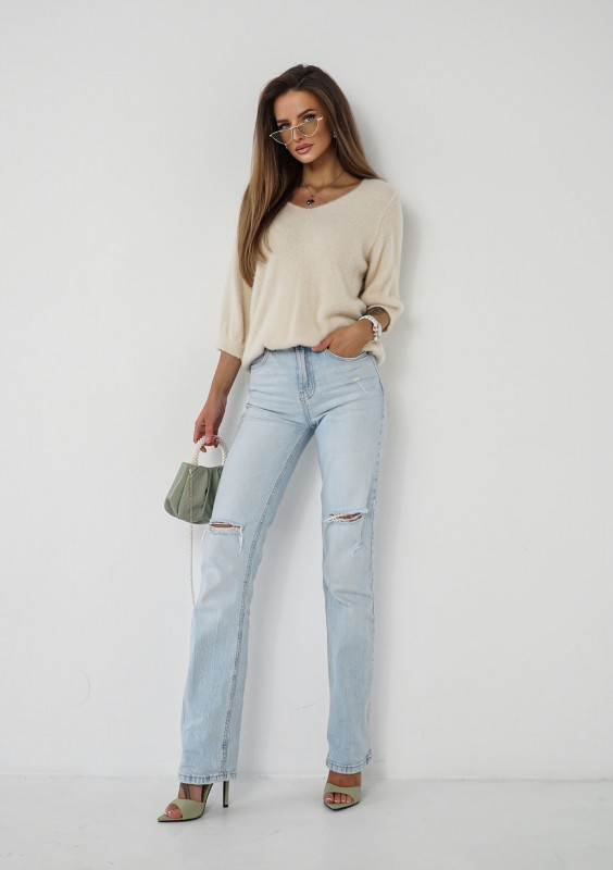 Mimi Soft - Puszysty sweter dzianinowy o lekkim kroju Beżowy