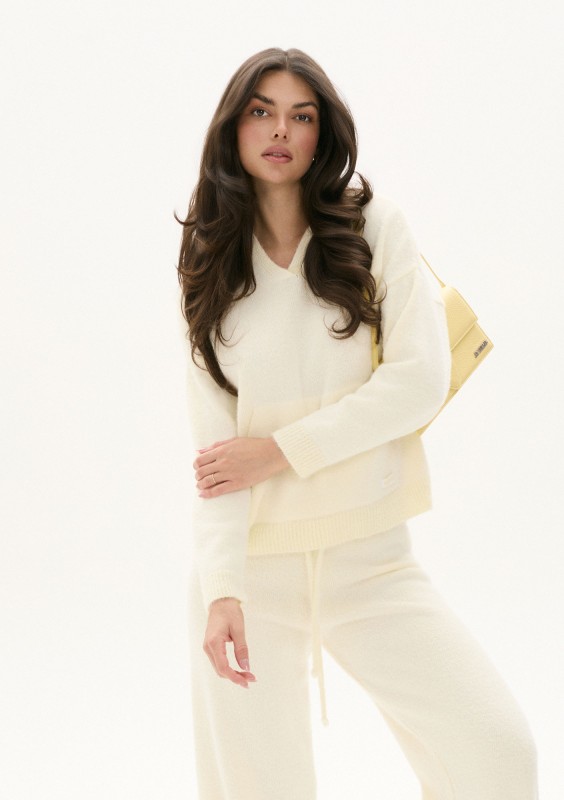 Yuki - Prążkowany sweter z dekoltem V Ecru