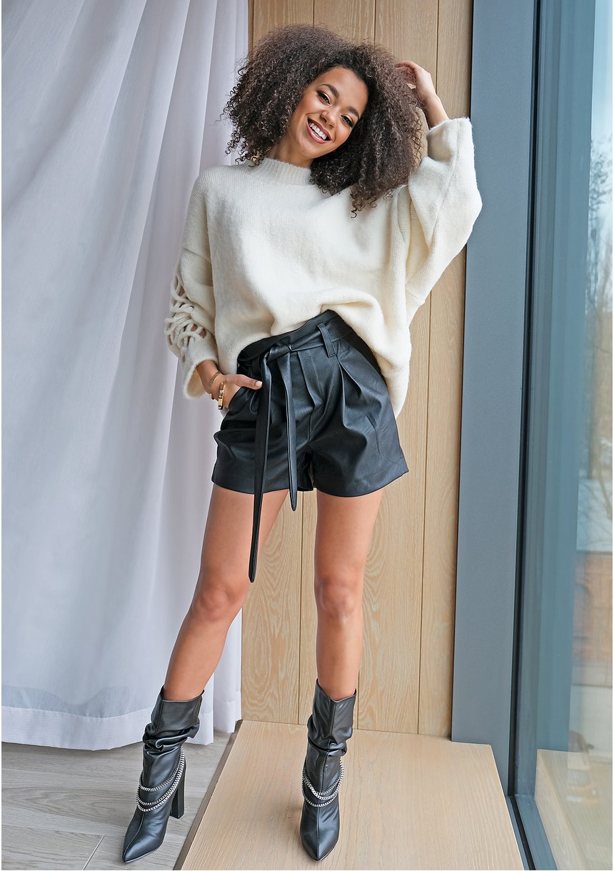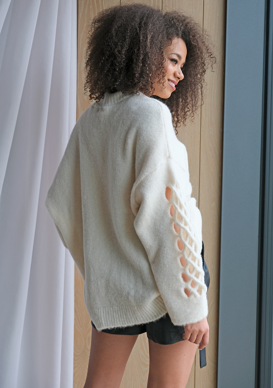 Stor - Sweter z golfem oversize Kremowy