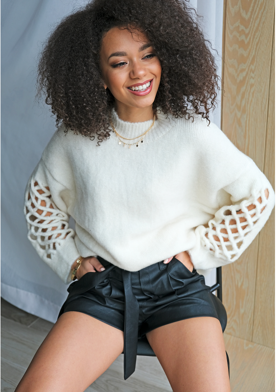 Celine - Krótki top z dzianiny Ecru
