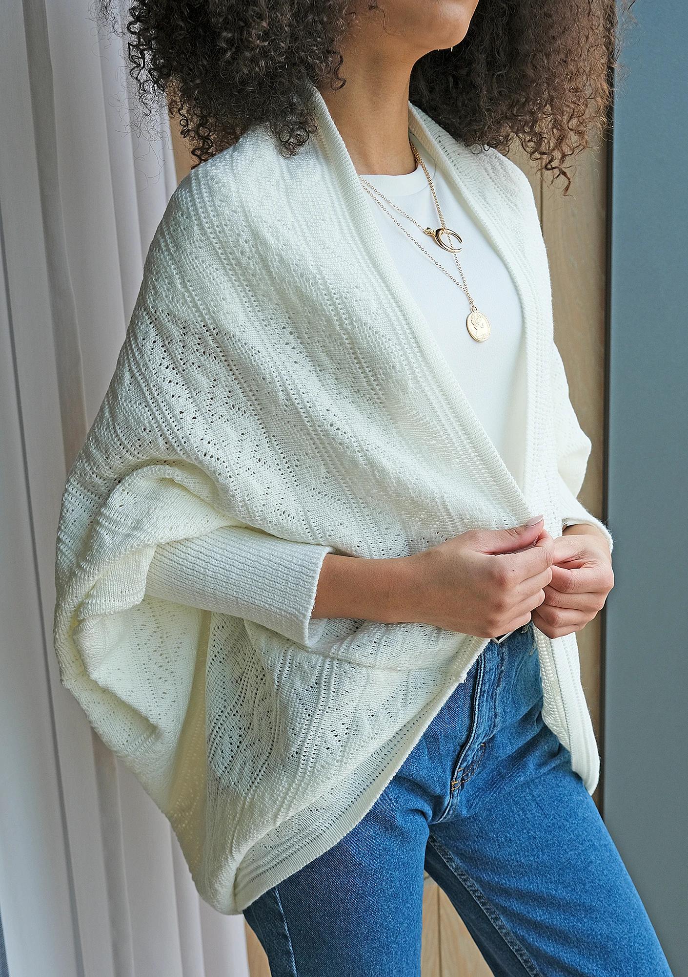Ażurowy sweter narzutka oversize A46 Kremowy ILM