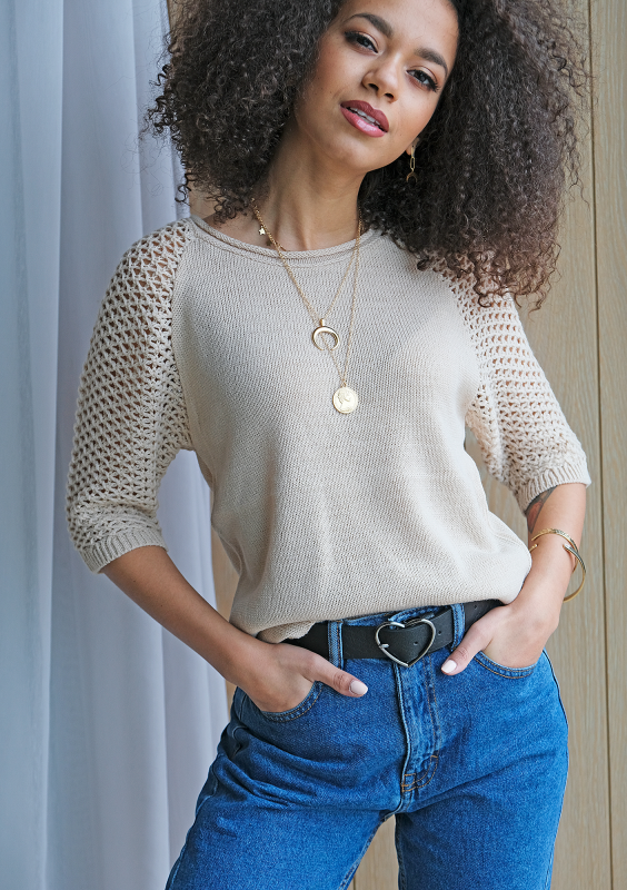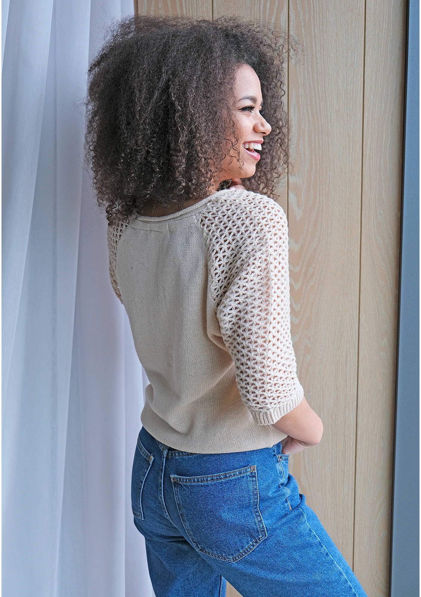 Letni sweter z rękawem z siatki A50 Beżowy ILM