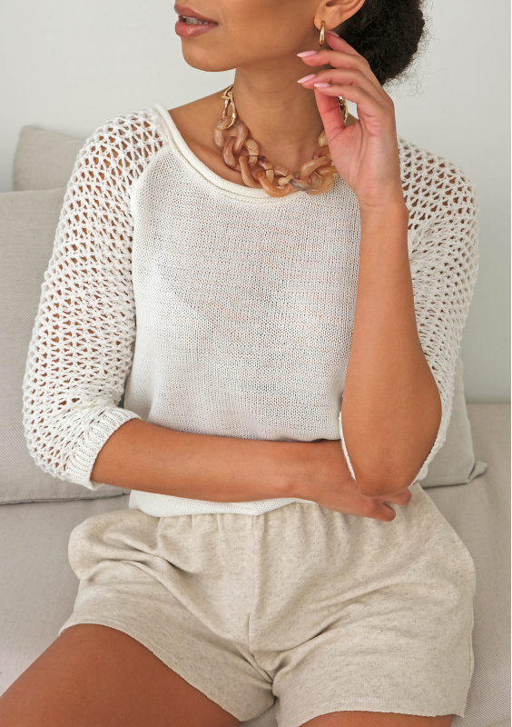 Letni sweter z rękawem z siatki A50 Ecrue ILM