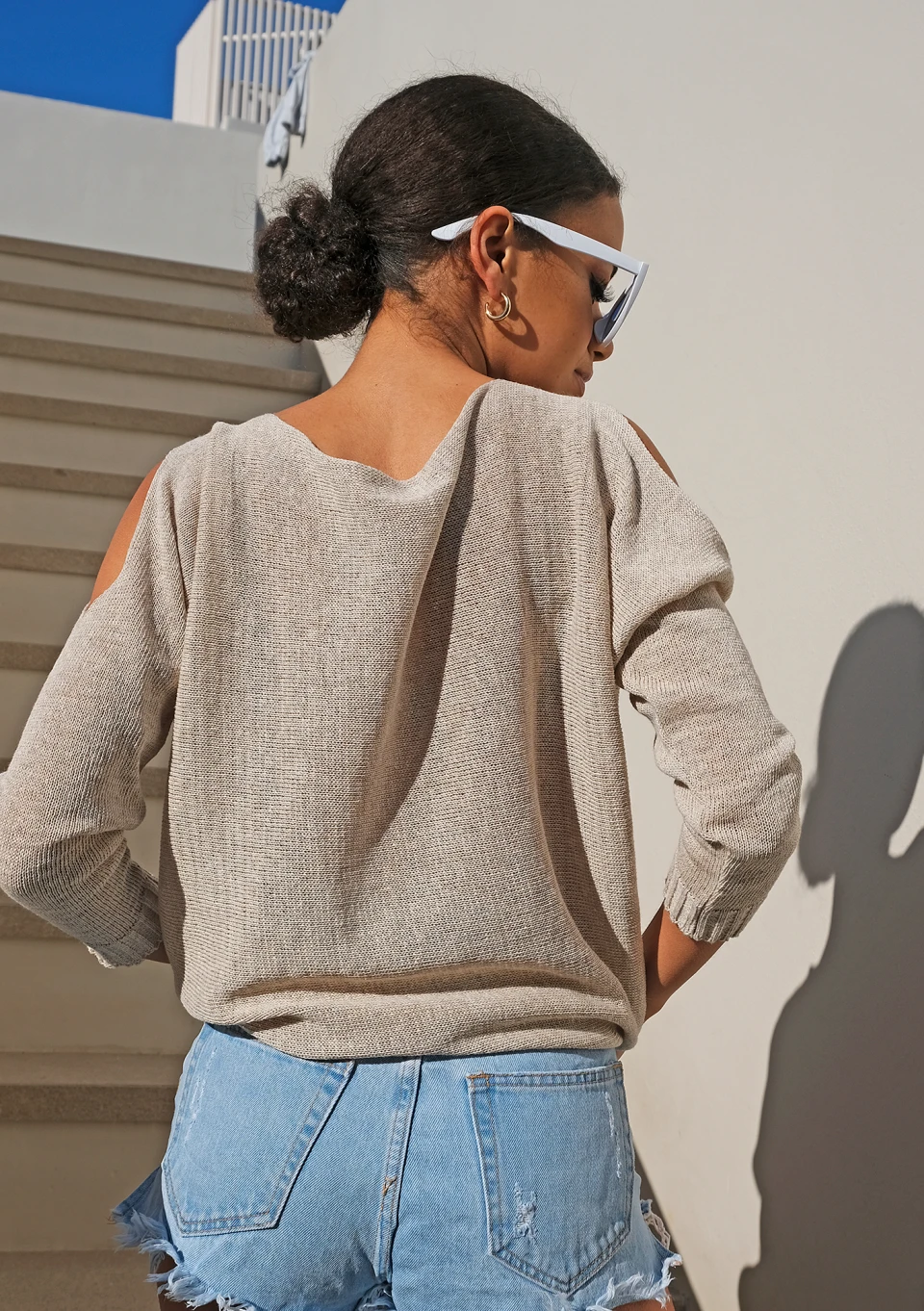 Knotty - Kardigan z wiązaniami i szerokim rękawem Brązowy