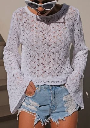 Milo - Ażurowy krótki sweter z bawełny Biały