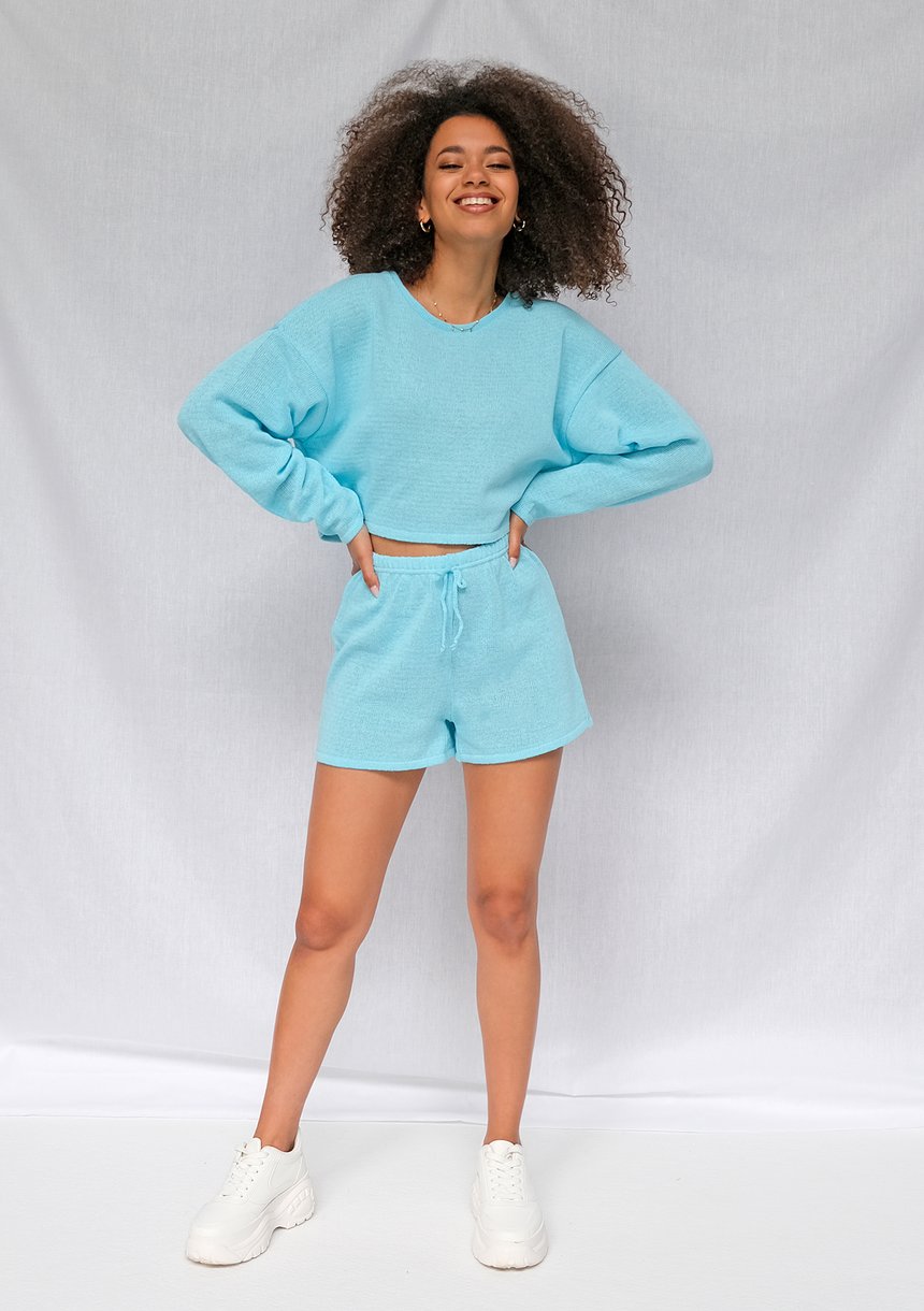 Lekki sweterek na cieplejsze dni, wykonany z bawełny. Wyrazisty odcień turkusu idealnie wpisze się w słoneczną, wakacyjną aurę. Fason odrobinę krótki, idealny by wyeksponować opaleniznę i poczuć przyjemny przewiew.