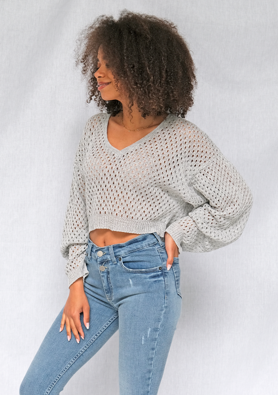 Ażurowy sweter z bawełny o luźnym kroju Szary ILM A60