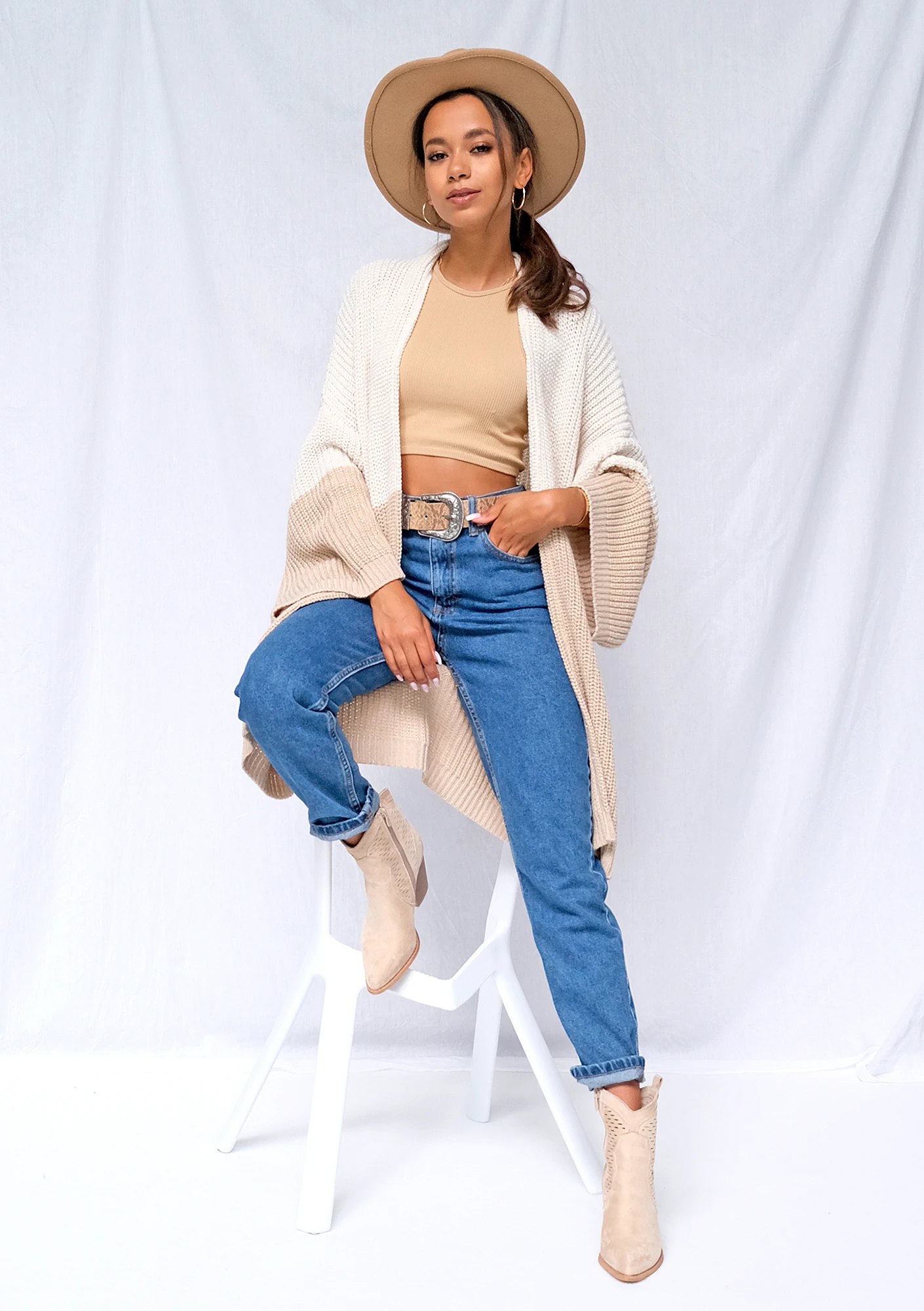 Jednym z takich swetrów, z całą pewnością jest kardigan ze złotą nitką, który od razu przyciąga wzrok. Chociażby ze względu na swój fason, kolor oraz precyzyjne wykonanie. Przede wszystkim proponowany kardigan powstał z połączenia dwóch kolorów, a mianowicie bieli i beżu. Takie łączenie jest w tym sezonie niezwykle na topie i na pewno dzięki niemu zawsze będzie wyglądać się fenomenalnie. Rękawy są luźne, dzięki czemu spokojnie można założyć po nie bluzkę z długim rękawem. Te damskie swetry wykonane są z akrylu, który jest bardzo przyjemny w dotyku, a jednocześnie wyjątkowo ciepły. Poza tym sweter dostępny jest w jednym, uniwersalnym rozmiarze. Jest lekko oversize, dzięki czemu układa się świetnie na każdej sylwetce. Warto wspomnieć także o tym, że wszystkie nasze produkty są projektowane w Polsce, a następnie również tutaj szyte, przy zachowaniu wysokich standardów.